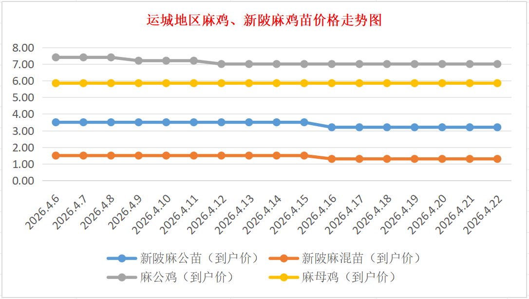 运城地区麻鸡、新陂麻鸡苗价格走势图(来源:鸡病专业网)