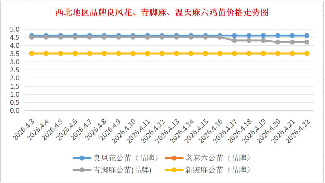 品牌新陂麻:价格稳定,到户价公苗4.50元/羽,稳。
