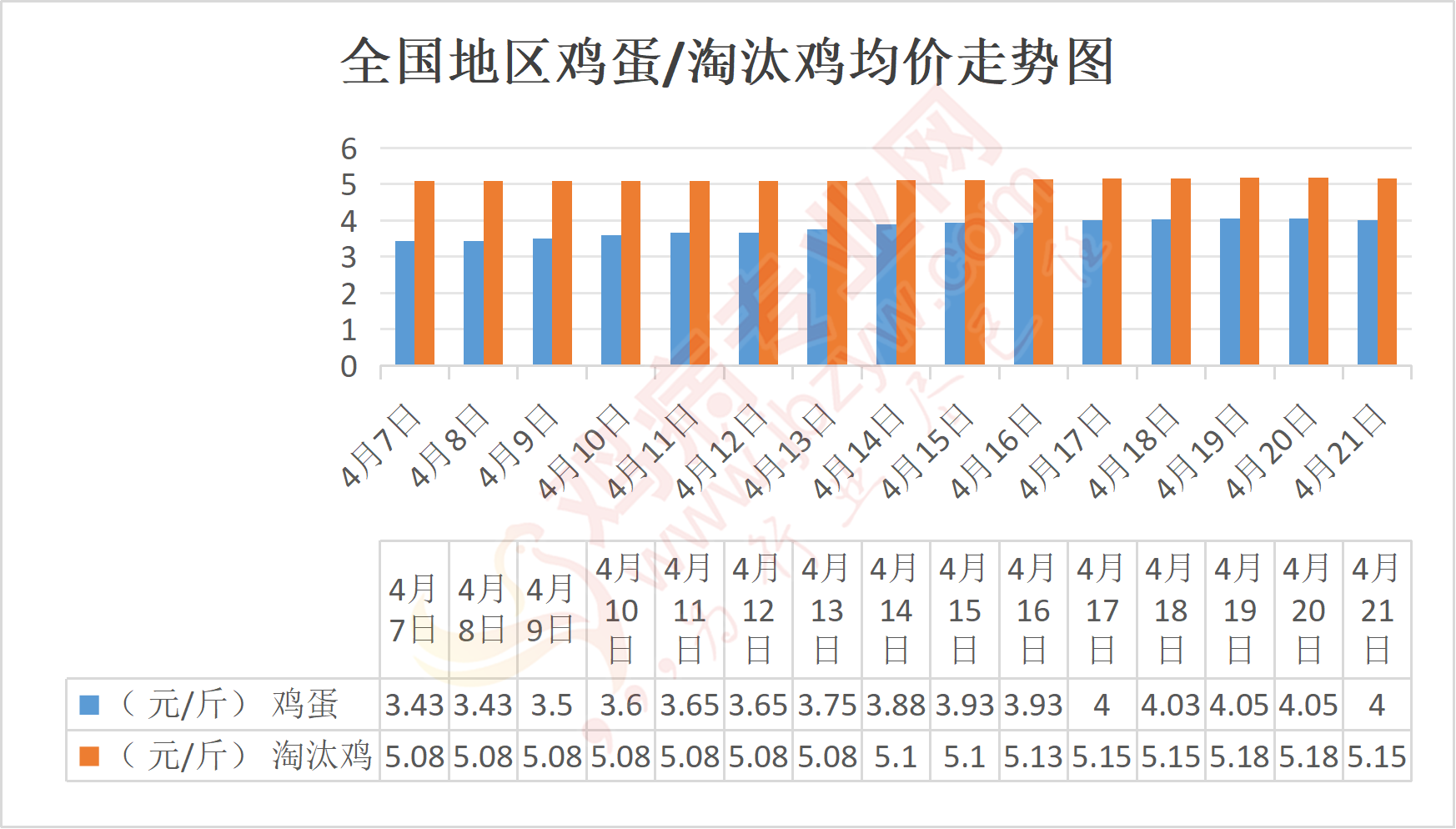 河北地区:承德鸡蛋3.91元/斤,与昨日相比持平,淘汰鸡4.6元/斤;