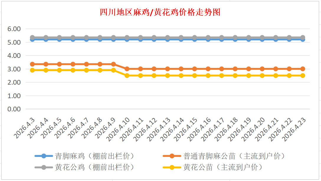 普通青脚麻公苗:价格稳定,主流到户价2.80-3.20元/羽,稳。