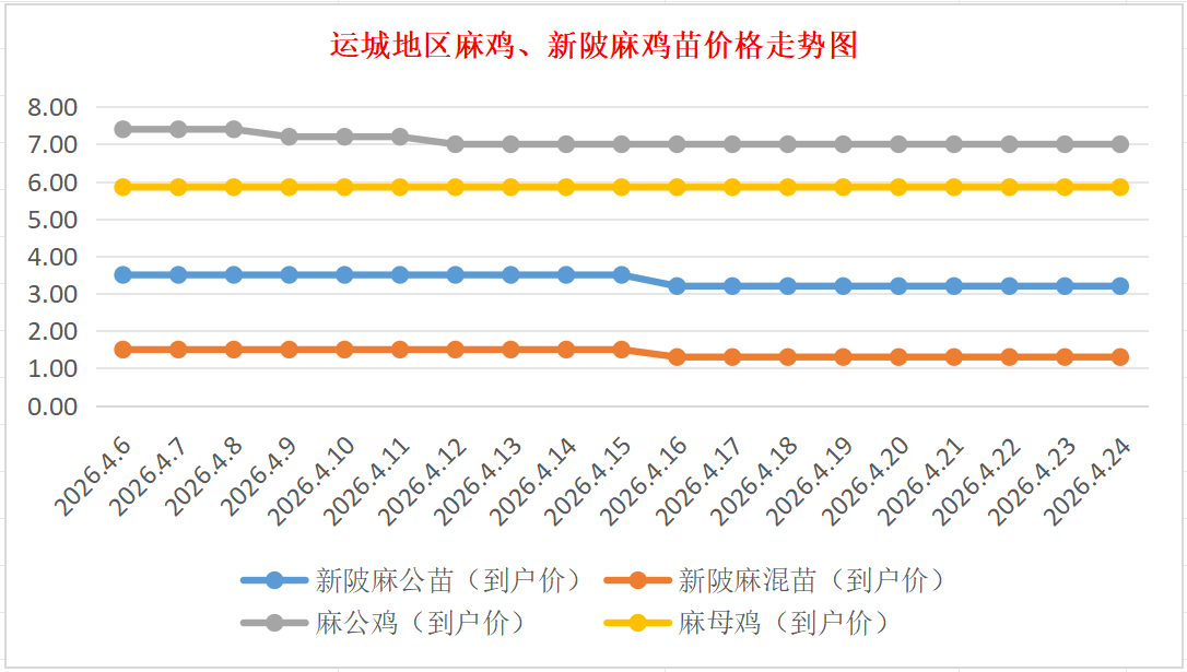运城地区麻鸡、新陂麻鸡苗价格走势图(来源:鸡病专业网)