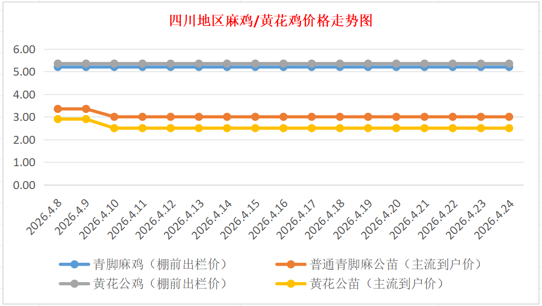 普通青脚麻公苗:价格稳定,主流到户价2.80-3.20元/羽,稳。