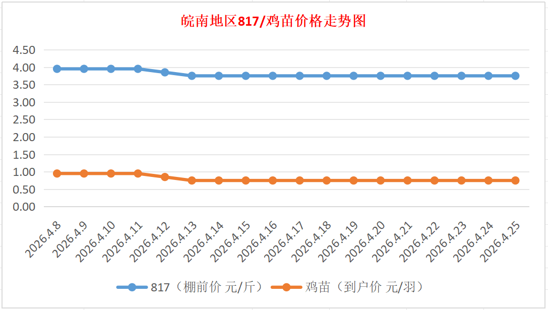 鸡病专业网独家信息:2026年4月25日皖南地区817-麻鸡行情最新走势