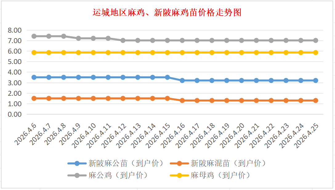 运城地区麻鸡、新陂麻鸡苗价格走势图(来源:鸡病专业网)