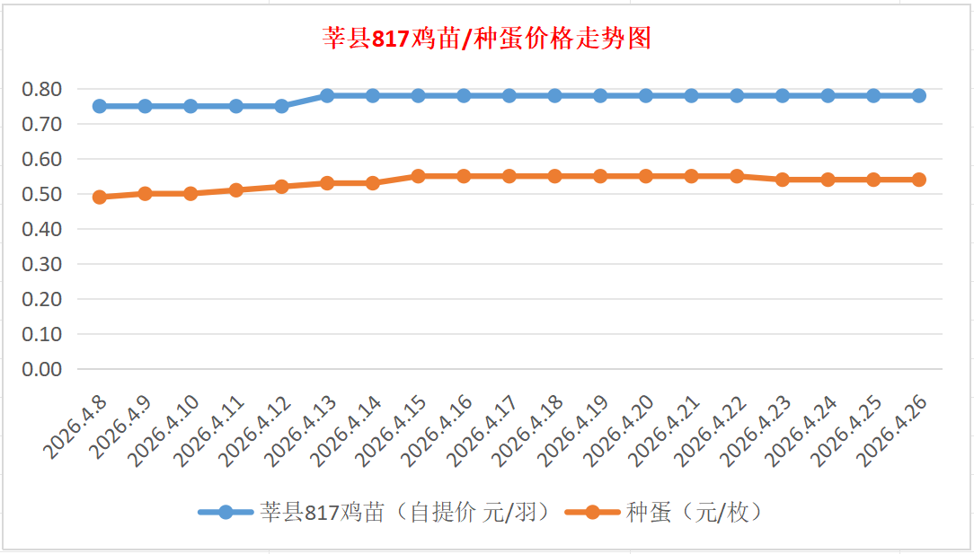 817鸡苗(混合):报价自提0.78元/羽。
