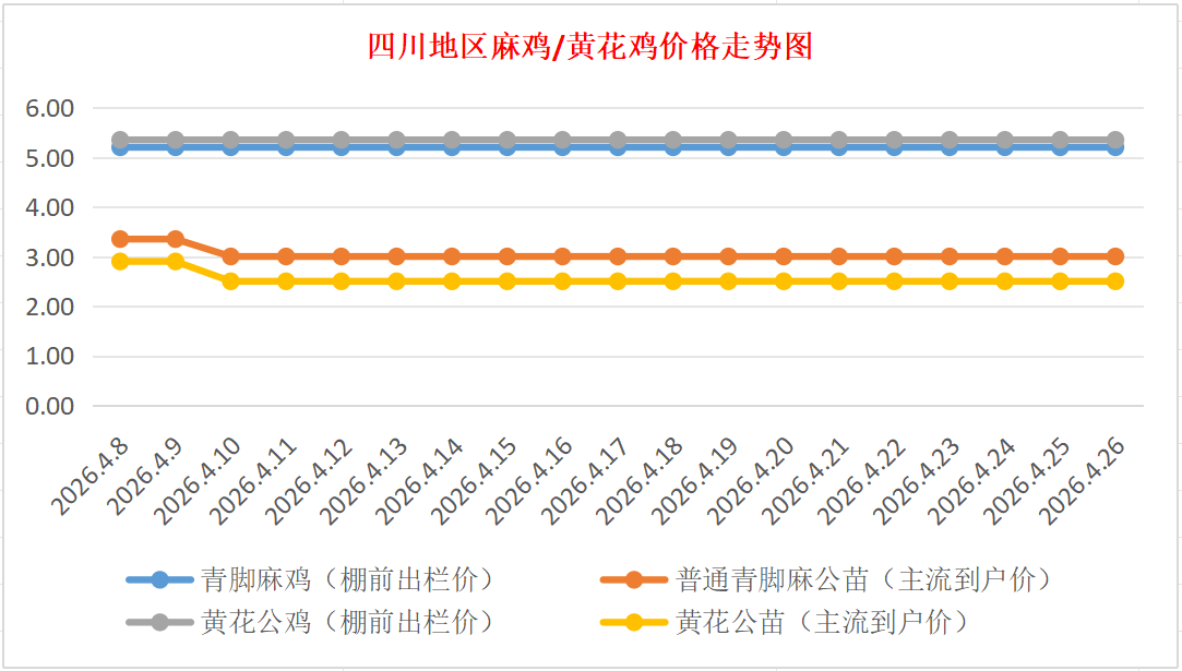 普通青脚麻公苗:价格稳定,主流到户价2.80-3.20元/羽,稳。