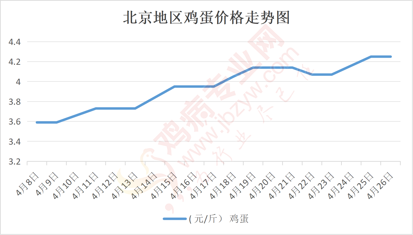 鸡病专业网消息:4月26日,北京各大市场鸡蛋价格维持稳定,主流参考价187元/44斤,石门,新发地、回龙观等主流批发价187元/44斤,稳;大洋路鸡蛋主流批发价格187元/44斤,稳,按质高低价均有,走货一般。