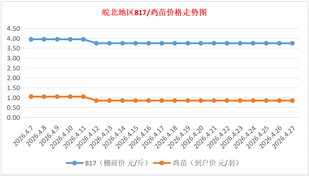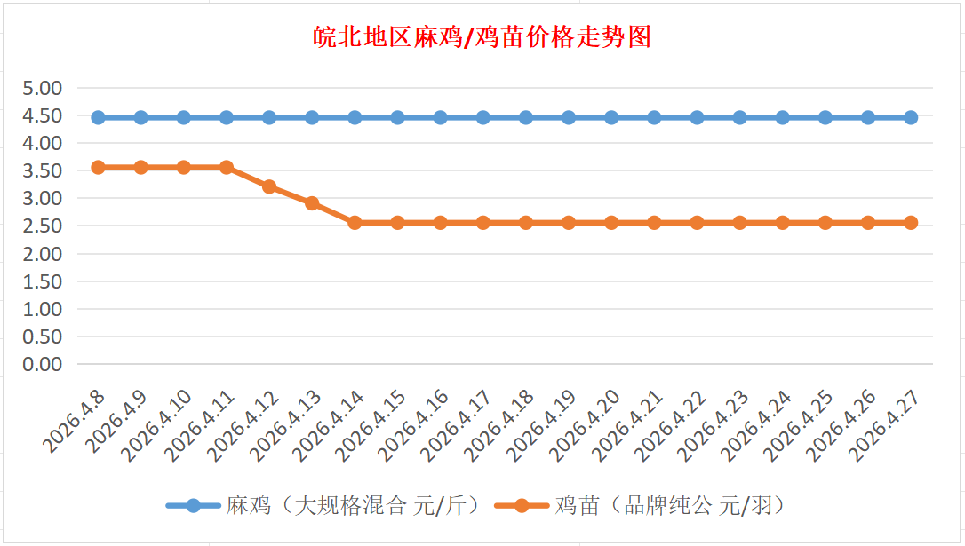 鸡病专业网独家信息:2026年4月27日皖北地区817-麻鸡行情最新走势