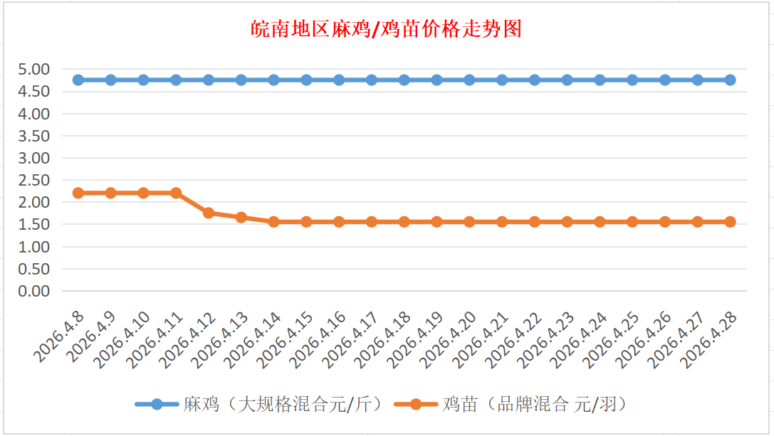 鸡病专业网独家信息:2026年4月28日皖南地区817-麻鸡行情最新走势