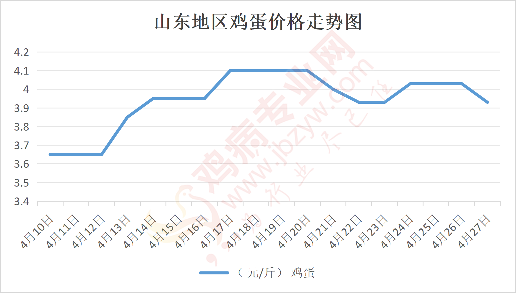 鸡病专业网消息:4月27日,山东地区莱阳鸡蛋3.95元/斤,落;青岛鸡蛋3.95元/斤,落;诸城鸡蛋3.9元/斤,落;安丘鸡蛋3.9元/斤,落;昌乐鸡蛋3.9元/斤,落;寿光鸡蛋3.9元/斤,落;昌邑鸡蛋3.9元/斤,落;高密鸡蛋3.9元/斤,落;青州鸡蛋3.9元/斤,落;临朐鸡蛋3.9元/斤,落;莱州鸡蛋3.95元/斤,落;威海鸡蛋3.95元/斤,落;临沭鸡蛋3.85元/斤,落;沂水鸡蛋3.85元/斤,落;沂南鸡蛋3.85元/斤,落;莒南鸡蛋3.85元/斤,落;兰陵县鸡蛋3.85元/斤,落;日照鸡蛋3.85元/斤,落;莒县鸡蛋3.85元/斤,落;日照辛萁商贸鸡蛋3.85元/斤,落;泗水鸡蛋价格116元/30斤,落;济宁、汶上鸡蛋价格116元/30斤,落;梁山、东平红蛋价格116元/30斤,落;枣庄滕州地区鸡蛋混码主流到户118元/30斤,落;泰安地区新泰鸡蛋价格116元/30斤,落;菏泽地区曹县主流到户116元/30斤,落;成武鸡蛋价格116元/30斤,落;单县到户116元/30斤,落;聊城莘县116元/30斤,落;莱芜鸡蛋173元/45斤,落;济南鸡蛋173元/45斤,落;德州鸡蛋152元/40斤,落;滨州鸡蛋152元/40斤,落。