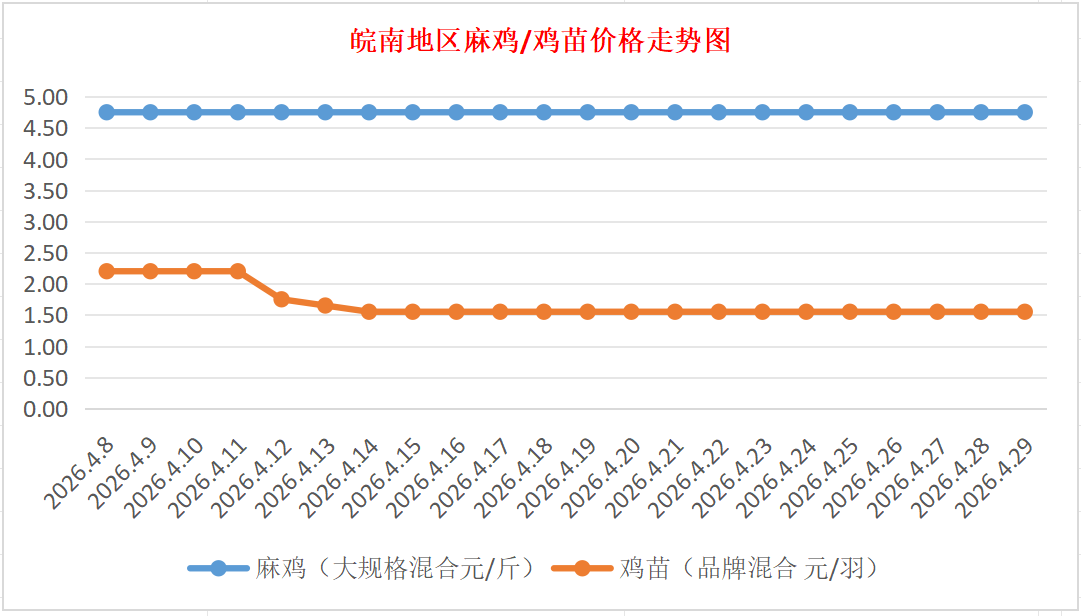 鸡病专业网独家信息:2026年4月29日皖南地区817-麻鸡行情最新走势