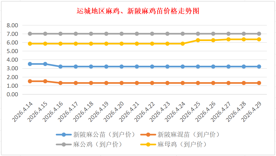 运城地区麻鸡、新陂麻鸡苗价格走势图(来源:鸡病专业网)