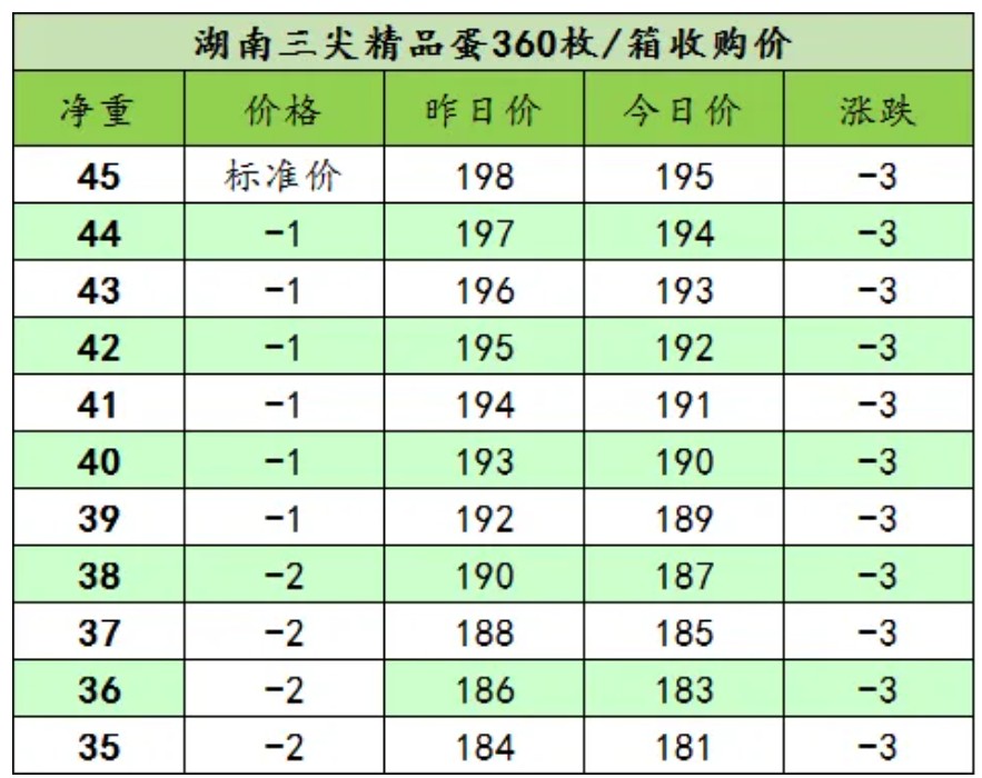 当前养殖基地存栏供应保持稳定,蛋源流通货源充足,供需格局逐步宽松,叠加近期市场无利好提振支撑,各地蛋价顺势进入普调下行通道,区域调价范围广、下调步调统一,市场看空情绪短期占据主导。结合当前市场供需及下游采购实际情况,我司顺应全国市场整体回落趋势,同步执行价格调整政策,今日鸡蛋报价整体下调3元。