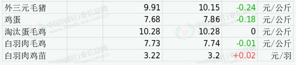 今日鸡蛋价格小幅回落。产蛋鸡存栏充足,市场货源供应宽松,五一节前终端备货进入尾声,下游采购积极性减弱,走货速度放缓,高价拿货意愿不足,压制蛋价上行空间。短期鸡蛋行情将维持窄幅震荡走势,节前以稳弱运行为主,节后消费转淡行情或进一步承压。今日主产区山东鸡蛋均价7.63元/公斤,较昨日价格下跌0.10;河北鸡蛋均价7.32/公斤,较昨日价格下跌0.21;广东鸡蛋均价7.47元/公斤,较昨日价格下跌0.20;北京鸡蛋均价8.04元/公斤,较昨日价格下跌0.26。