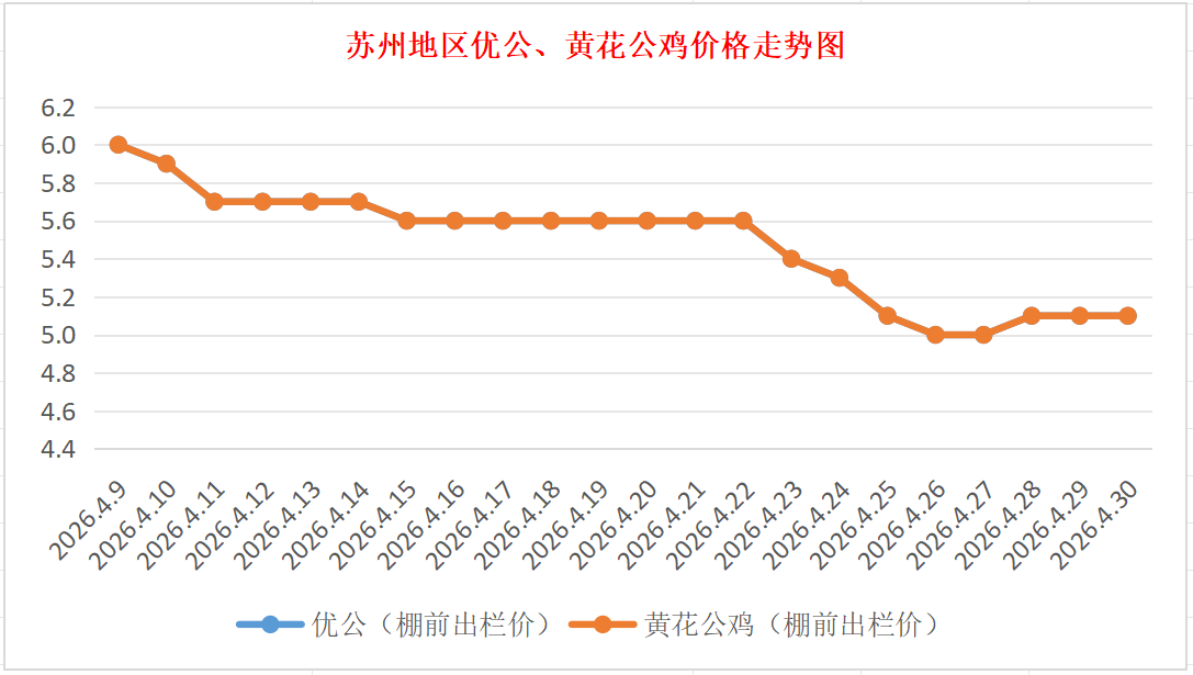 苏州地区优公、黄花公鸡价格走势图(来源:鸡病专业网)