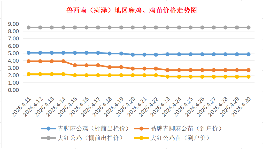 菏泽地区麻鸡、鸡苗价格走势图(来源:鸡病专业网)