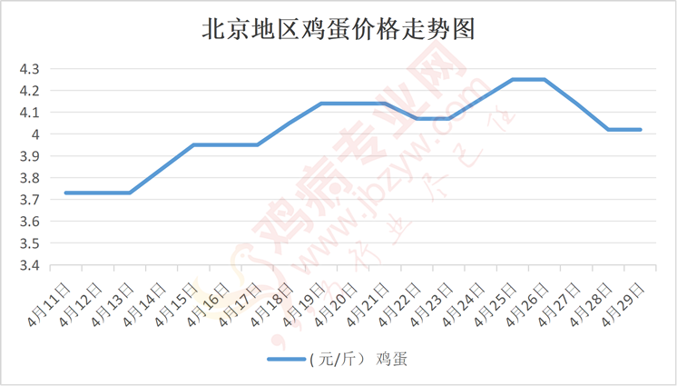 鸡病专业网消息:4月29日,北京各大市场鸡蛋价格维持稳定,主流参考价177元/44斤,石门,新发地、回龙观等主流批发价177元/44斤,稳;大洋路鸡蛋主流批发价格175-180元/44斤,稳,按质高低价均有,到车5台,走货一般。